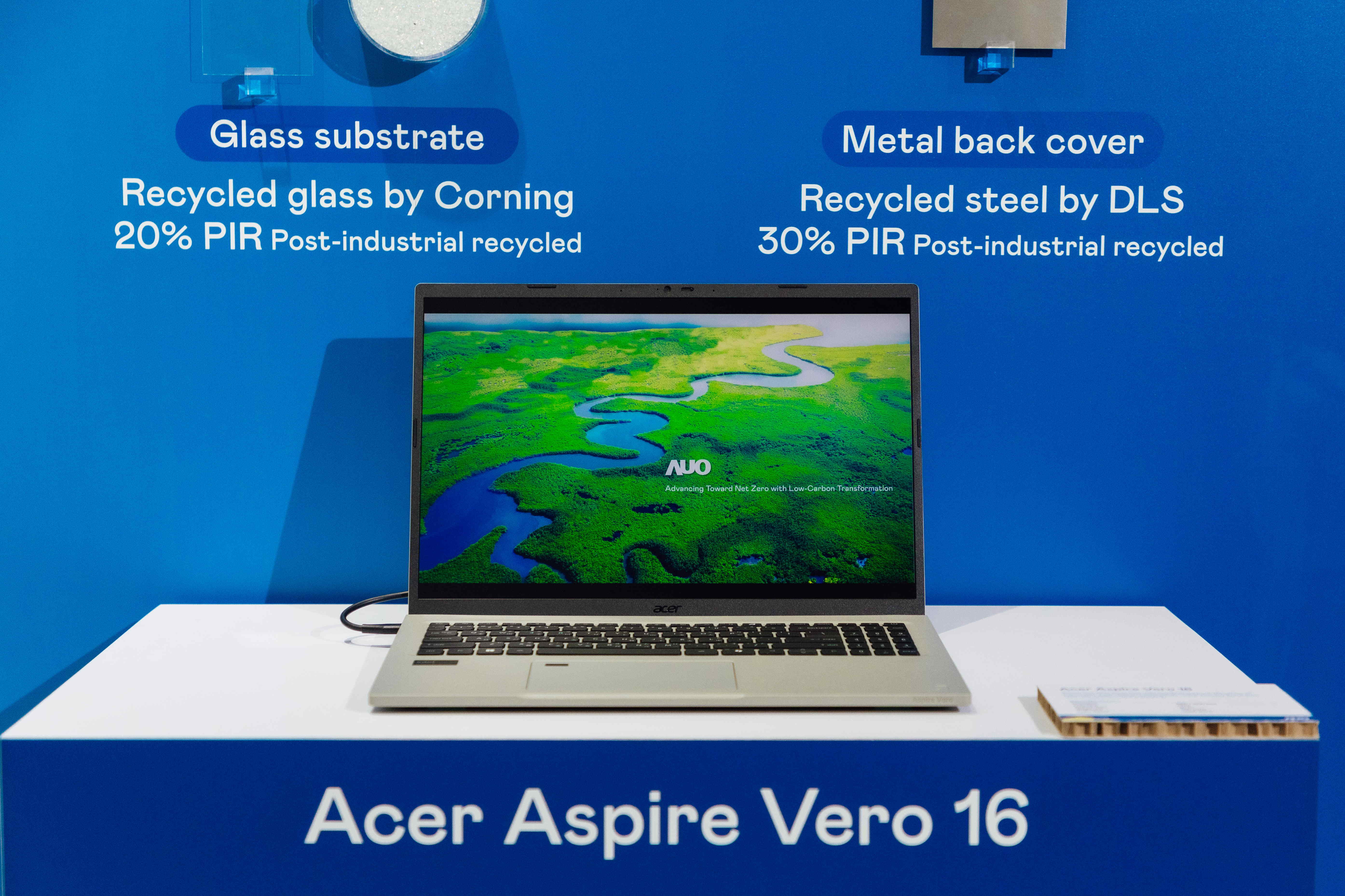全球首款笔记型电脑采用米兰·(milan)100%绿电制造的面板,结合PCR外亦使用工业后回收材料(PIR),例如回收玻璃和金属,减少对环境的影响。