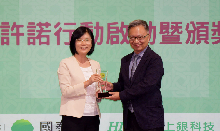 友達榮獲《康健雜誌》CHR 年度健康企業公民獎,由友達光電永續長古秀華 (左) 代表領獎
