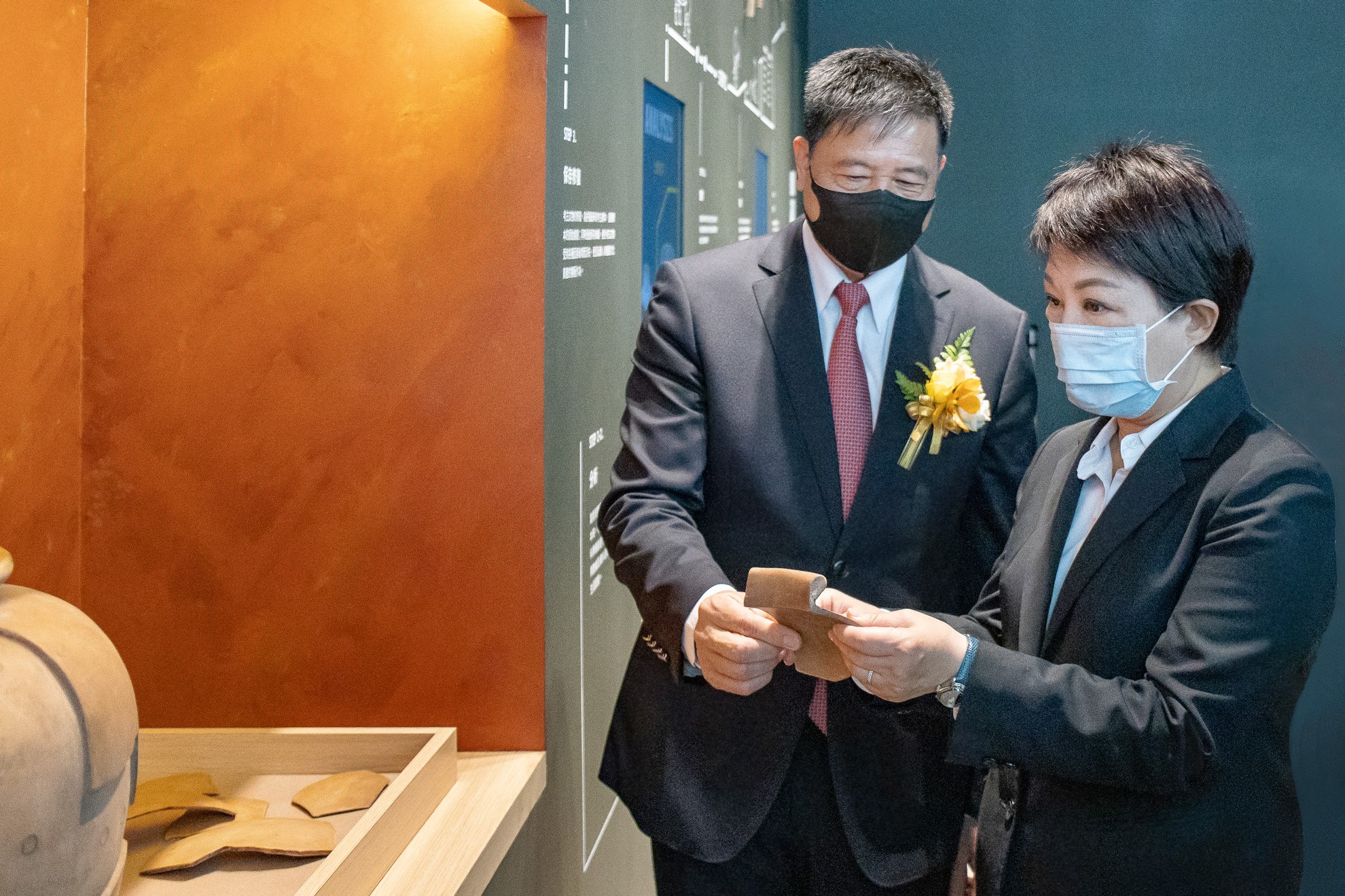 臺中市市長盧秀燕 (右)蒞臨友達西大墩窯文化館,友達光電董事長暨執行長彭双浪 (左) 陪同參觀